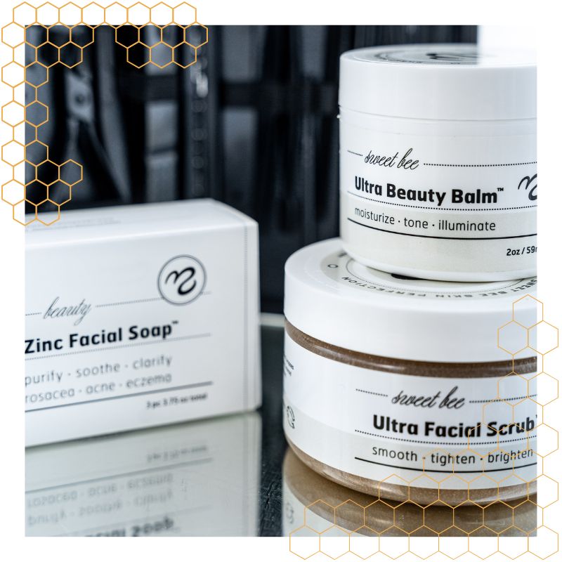 Bee-Based Ingredients – The products are a blend of honey, propolis, bee pollen, beeswax, and essential oils.